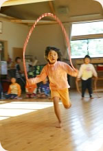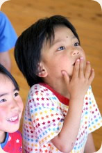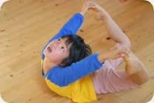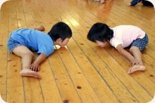 生のピアノ音に合わせて、いろんな運動をし、背骨や足腰、手足の指、腕の力をつけ、バランス感覚を養います。