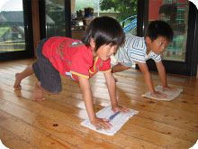毎日雑巾がけをしています。部屋をきれいにすることはもちろん、腕の力、足腰の力、足指の力、背骨の力を強くします。足の親指のけりの強さは、生きる力の強さ、意欲の強さを表します。