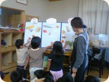 絵本や紙芝居、童話の読み聞かせを毎日行っています。受身だけのテレビは置いていません。保育士の生の声で、子どもたちは集中し、イメージを膨らませます。